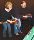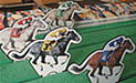 There are 4 hobby horse's each having a different colour, red, blue, yellow & green. Each player has to put the hobby horse between their legs just above their knees, and hold onto the handles provided on either side of the horses head. Using the hobby horse, each rider has to simulate being a jockey on a horse using a circular motion, and the faster they do it the quicker their horse will move up the track to the finishing post. The game will be supplied With authentic race horse commentary which will add to the fun of the evening. Area space required 6ft by 10ft.